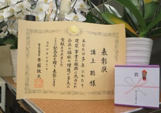 多年にわたる建築設計監理業への精励と、関係団体役員として地方業界の発展に寄与した功績が認められたものです。