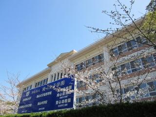 満開の桜に祝福されながら、純心中学校・純心女子高等学校校舎が